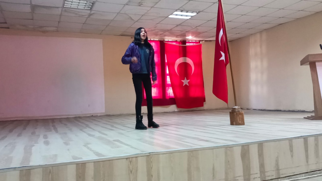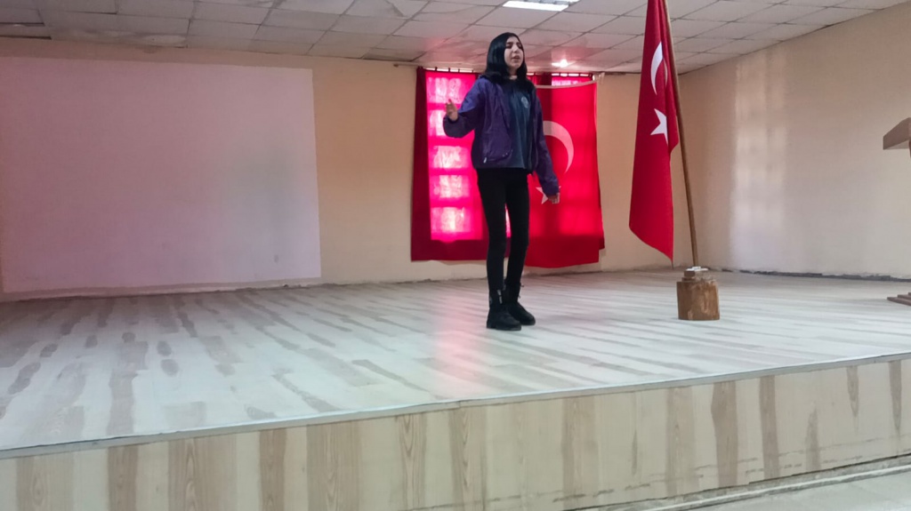 Hanak İlçe Mili Eğitim Müdürlüğü tarafından düzenlenen "İstiklal Marşını Güzel Okuma Yarışması"nda okulumuz 8/A sınıfı öğrencisi Sıla KARAÇAY ortaokul katagorisinde dördüncü oldu. Sıla'nın şiiri okuduğu sırada, içten ve coşkulu okuyuşu karşısında salondaki bütün dinleyiciler duygulu anlar yaşadı. Öğrencimiz Sıla KARAÇAY'ı tebrik ederiz.